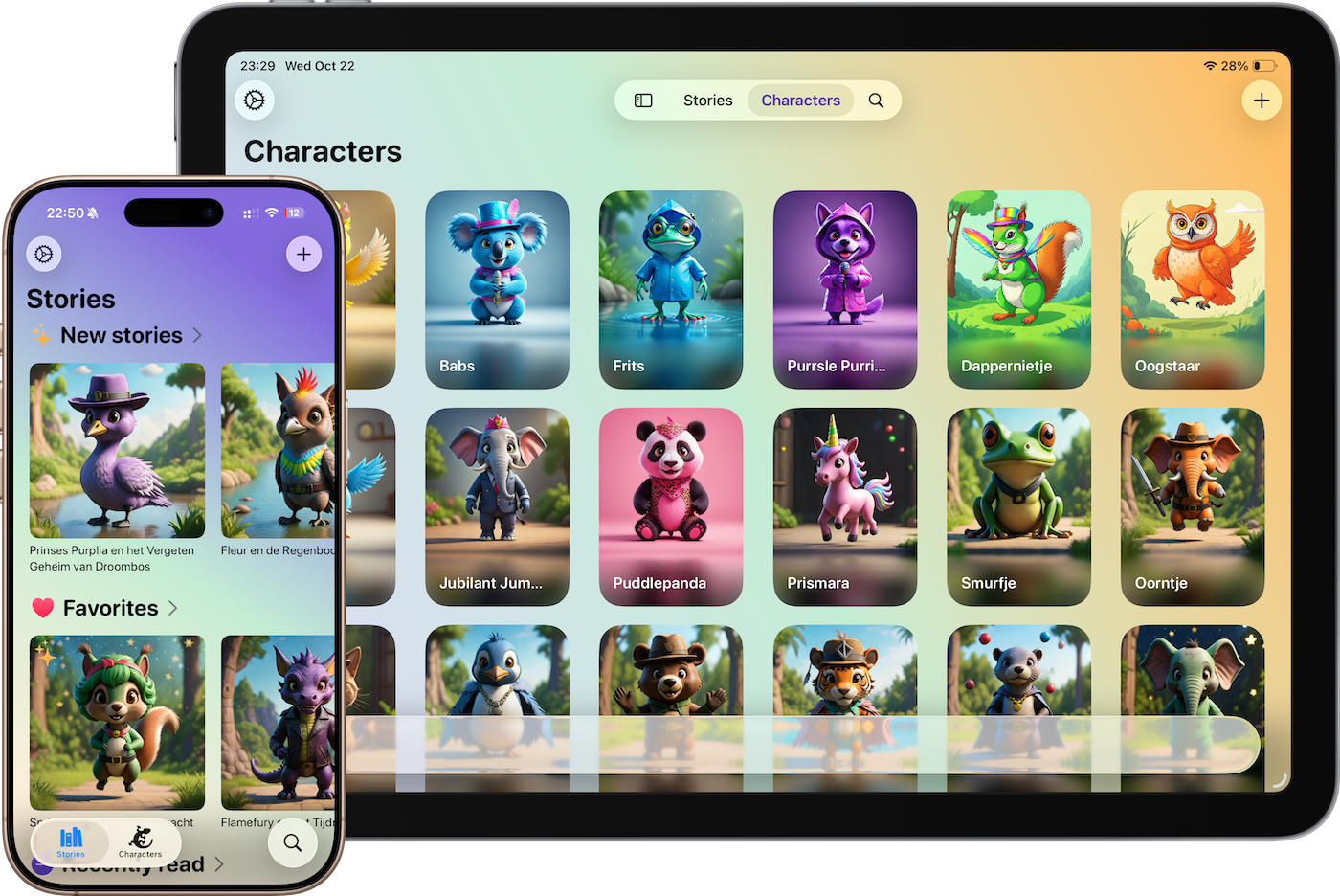 All your characters and stories are automatically synced to iCloud and are available on all your devices.